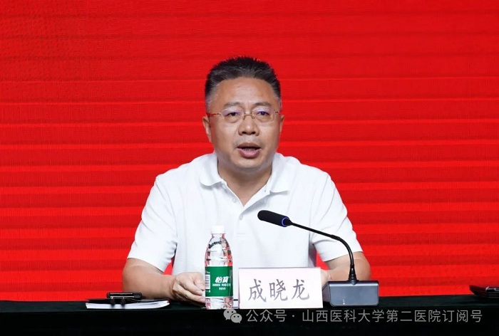 成曉龍書記代表院黨委,向獲獎醫師致以熱烈祝賀,并向全院醫師和醫務工作者致以誠摯的節日問候。他深情回顧了二院人薪火相傳、不懈奮斗的輝煌歷程,并強調,正是一代又一代二院人團結拼搏、接續奮斗,不斷拓展醫療服務的廣度與深度,推動醫院高質量發展邁出堅實步伐,生動詮釋了“大醫精誠”的深刻內涵,為守護人民生命健康筑起了堅不可摧的防線。他進一步勉勵全院醫師及醫務工作者,要深入學習貫徹黨的二十屆三中全會精神,強化政治引領,提升思想認識,將黨的光輝旗幟高高飄揚在守護人民健康的最前沿;要持續錘煉專業本領,追求卓越醫術,強化醫德醫風建設,為患者提供更加精準、高效、溫暖的醫療服務;要牢記為民初心,勇于擔當責任,積極投身醫院發展建設,用實際行動踐行“人民至上、生命至上”的崇高理念,為健康中國、健康山西的建設貢獻新的更大力量。