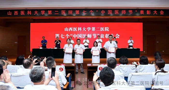 崇尚人文精神,彰顯醫者仁心。為弘揚醫者無私奉獻、救死扶傷的高尚情操,激發全院醫師的職業自豪感與使命感,8月22日下午,山西醫科大學第二醫院在影像樓六層大學術報告廳召開第七個“中國醫師節”表彰大會,對在醫院醫療工作中表現突出的醫師進行集中表彰。全體院領導出席會議,各黨支部書記、科主任、護士長和受表彰人員代表參加會議。