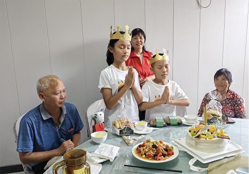 剛下車,鄭浩南就急忙從奶奶的三輪車上下來,遠遠的跑過來,“媽媽”這個最簡單但最偉大的稱呼對于10歲的鄭浩南來說是一種奢侈,半歲時媽媽就離開了他,懂事以來就沒有叫過媽媽。每次課本提到媽媽這個詞語,孩子都是眼淚汪汪的,今天終于有了屬于自己的媽媽了。馬若冰的性格比較內斂,自理能力比較強,和爺爺一起從三輪車上下來,攙著爺爺接過志愿者的蛋糕和禮物。這個孩子也是2歲多沒有了媽媽,父親和爺爺出了車禍以后變成了殘疾,奶奶去世后,孩子總是沉默寡言。大家一起分享著香甜的蛋糕,一起享受著美好的時刻。