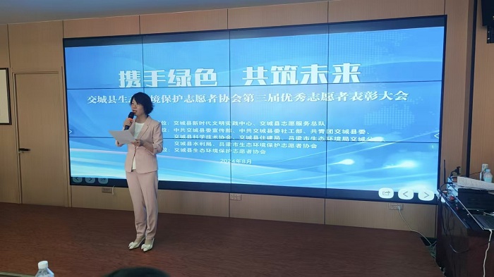 2024 年 8 月 27 日,交城縣生態(tài)環(huán)境保護志愿者協(xié)會第三屆優(yōu)秀志愿者表彰大會在田園書院成功舉辦。參會領(lǐng)導(dǎo)有中共交城縣委常委、宣傳部部長王軍軍、中共交城縣委社會工作部部長王華、交城縣水利局局長張五寧、共青團交城縣委副書記張佳敏、交城縣科學(xué)技術(shù)協(xié)會副主席梁爽、呂梁市生態(tài)環(huán)境局交城分局監(jiān)控中心主任薛鯤、呂梁市生態(tài)環(huán)境保護志愿者協(xié)會會長張晉。