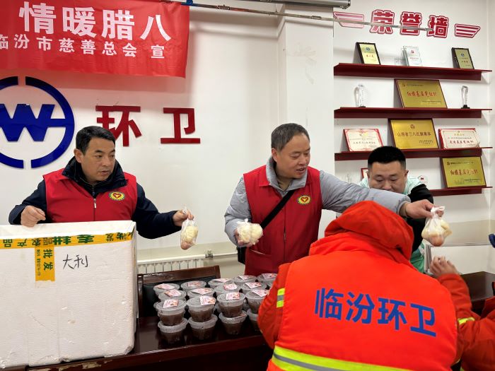 在農(nóng)歷十二月初八這一傳統(tǒng)的臘八節(jié)里,臨汾市慈善總會(huì)舉辦了一場主題為“濃濃粥香、情暖臘八”的送粥活動(dòng)。此次活動(dòng)旨在通過贈(zèng)送臘八粥的形式,向辛勤工作在城市一線的環(huán)衛(wèi)工人表達(dá)溫暖與關(guān)愛,讓他們?cè)诤涞亩吕锔惺艿揭环萏貏e的節(jié)日關(guān)懷。