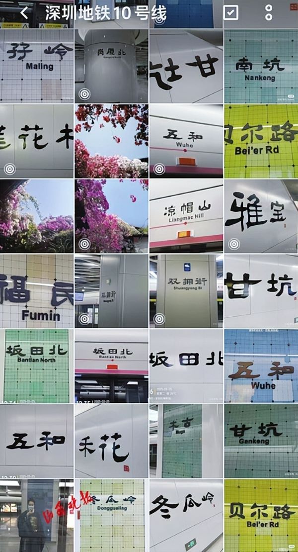 寥寥幾句話迅速引發(fā)了深圳網(wǎng)友的熱烈響應,眾多市民前往地鐵站拍攝照片,沒過兩天,全部的站名一疊疊地發(fā)在了小張的評論區(qū)下面,大家在評論區(qū)分享自己的感受,訴說對姥爺作品的喜愛。深圳特區(qū)報報道,大家拍的不僅是站名,更是一份“替姥爺圓夢”的心意。
