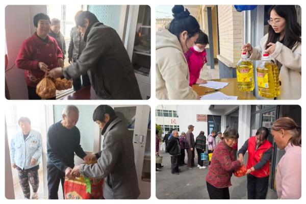劉軒窯、樓嶺、壇嶺頭、郝莊、溝東等村邀請村里的老人齊聚一堂,共享敬老宴。長者們圍坐在餐桌旁,一邊品嘗美味佳肴,一邊閑話家常。一道道美食、一張張笑臉,匯聚成濃濃的敬老情,在餐桌間彌漫開來。與此同時,上城公、崔莊、尹東、東莒、小河西等村分別為村里老人發放大米、面、油、雞蛋等慰問品。這些慰問品不僅解決了老人的實際需求,更給予了他們精神上的慰藉,為平淡的日常生活增添了喜悅與溫暖。