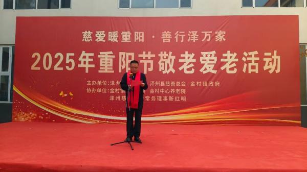 隨后,靳水生會長致辭。他代表澤州縣慈善總會向老年朋友致以節日問候,感謝金村鎮在慈善事業中的突出貢獻,并承諾縣慈善總會將繼續發揮慈善在養老保障中的補充作用,為老年人辦更多實事。